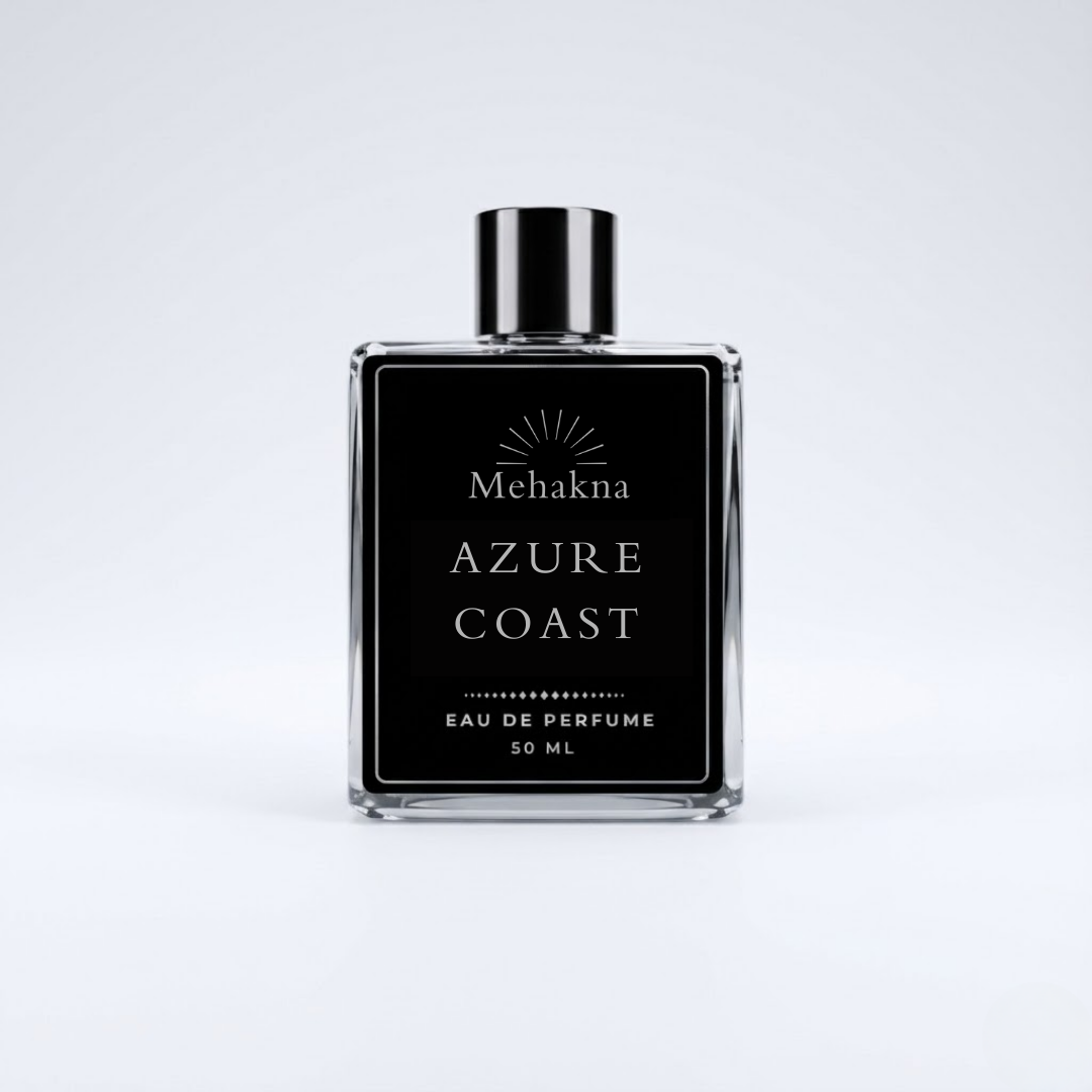 Azure Coast by Mehakna follows a fresh aquatic fragrance DNA with breezy marine and clean citrus notes inspired by coastal air.